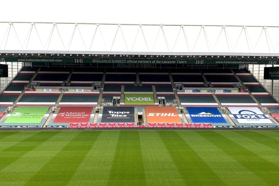 Amongst our clients, Bath Rugby, Northampton Saints and Reading Football Club chose to brand their stands with the club’s colours. However, by using 3D logos on large format banners, the message is immediately bold and clear.